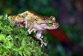 | 1.中小型,♂4-4.5cm,♀約4.5-5.5cm 2.背面墨綠色,虹膜及大腿內側橘紅色 3.指(趾)端有吸盤 4.體側及四肢內側有許多小黑斑 |